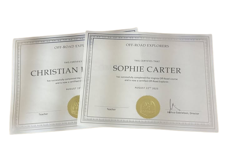 It’s geared towards ages 8-11, those typically in 3rd to 5th graders. The course is designed to help kids understand that grownup’s take their vehicle off the pavement, but still respects land, animals and does so in a safe manner.